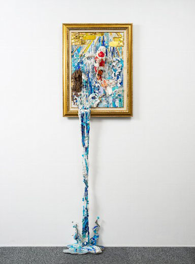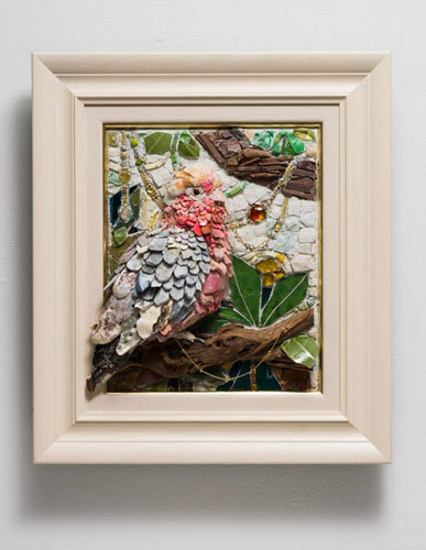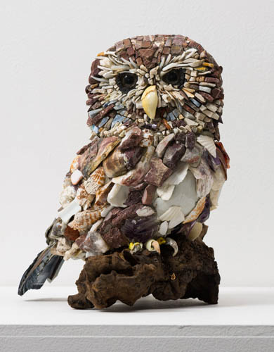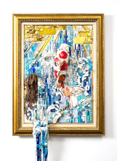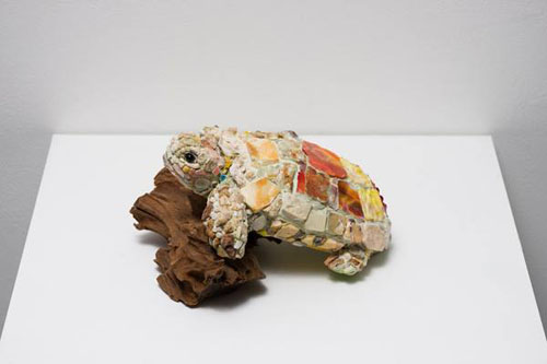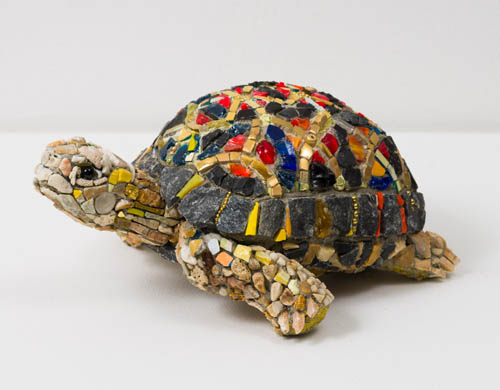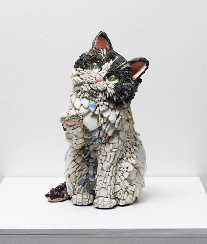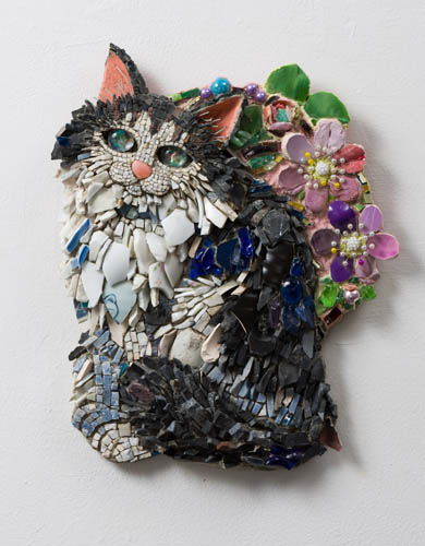 Kayo Nishinomiya majored in Mural Painting, faculty of Oil Painting, Tokyo University of the Arts. She is well known with her sculptures of mosaic. She creates animal sculptures such as Daruma-shaped cats and octopuses using fragmented marbles and shells as materials. Last year she studied in Italy by the Japanese Government Overseas Study Program for Artists. In 2014, she exhibits about 10 new works.