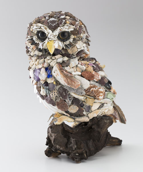 Kayo NISHINOMIYA「Elegance」2015 80.2×85.0×20.0cm, モザイク:石、ガラス、陶器、貝、流木、金属、その他・木製パネル、スタイロフォーム、セメント