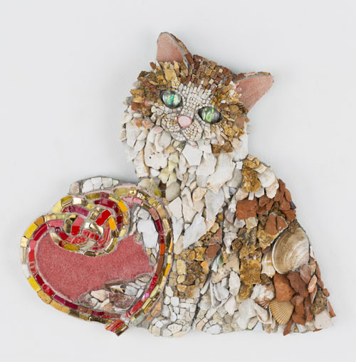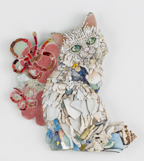 Kayo NISHINOMIYA「猫だるま−拾玖ノ姫(じゅうくのひめ)・愛」2015 18.2×17.5x20.4cm, モザイク