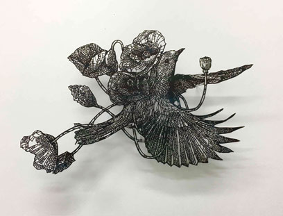 盛田亜耶「コマドリ・芥子」2020年 切り絵、紙