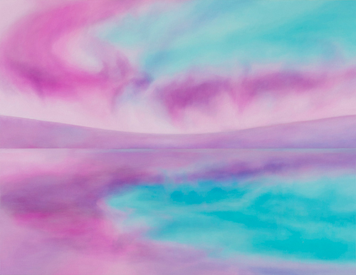 2006年、1年間のNY滞在前後より、風景をモチーフに光を描いている。水面の上下は心の内と外のメタファーであり、共鳴し合う様でもある。近年はとくに「朝」の光、その無垢な姿や力強さにひかれて、微妙な時間帯を描いてきたが、新作では、朝のもやのような空気感を表現している。寒さに向かう庭が、季節外れの湿り気のある空気に潤んだ様相を見せたとき、不意に心に光がともったような感覚が湧きあがった。